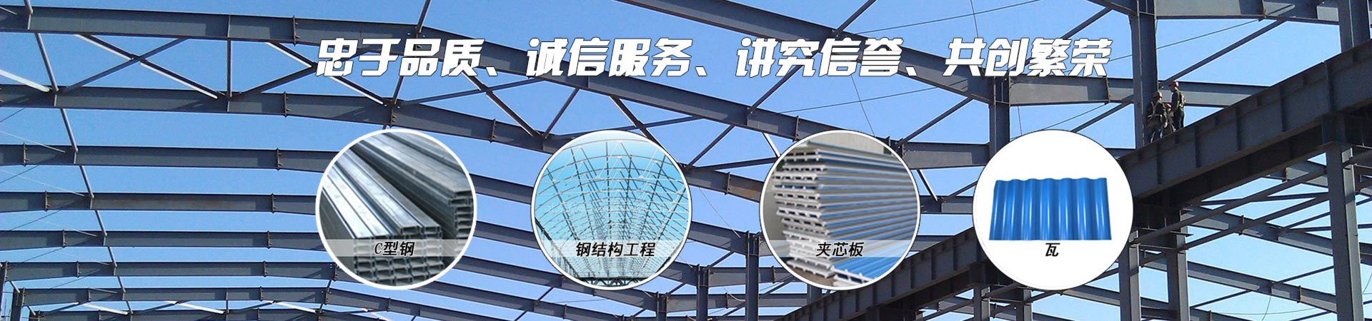 本公司主要經營項目有:鋼結構、大跨度空間管桁架、鋼結構廠房、 汽車展廳、制作大跨度空間網架、管道的焊接安裝、加工各種金屬隔熱板、 幕墻工程、彩鋼板、彩鋼夾心板等。